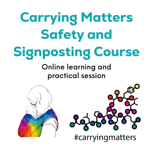 “I thoroughly enjoyed Rosie’s online theory course on babywearing. It was easy to use and navigate online. As well as the written word, there were informative videos and links to other articles to read covering many varieties of slings and carriers, how to wear them and troubleshooting. The course started by talking through why carrying matters and the science behind it, all so important to know and understand when helping new parents. An introduction to babywearing safety and the role of the peer supporter are also included and have the perfect level of detail. Overall I found the course very informative and easy to break down into manageable sections to work through at my own time. I feel fully informed and now understand why carrying matters, the different options available and the importance of safety when carrying. I feel much better informed to be able to support parents with their carrying journey.”